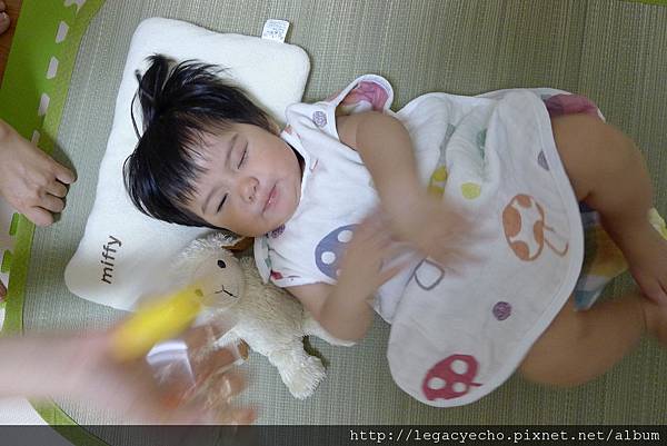 亮亮對小羊非常有興趣,亮亮有一隻絨毛小羊,每天晚上睡覺時,她會將小羊放在身邊。這是亮亮說了晚安之後,立刻假裝睡覺的模樣,調皮可愛。