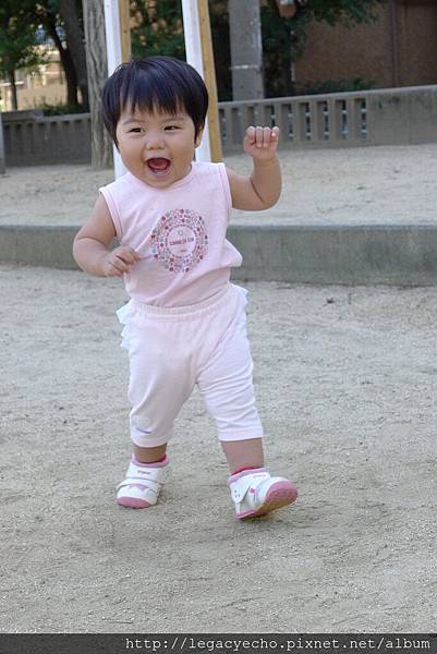 八月中旬回日本後,非常喜歡練習走路,由於Jay住的地方較小,所以亮亮非常喜歡到公園散步。