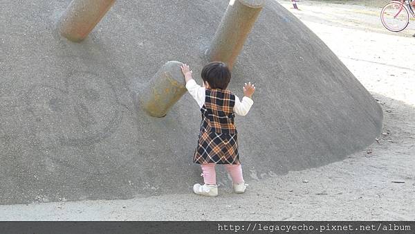 這是讓大一點的孩子練習攀爬,模仿攀岩,亮亮好想挑戰,但是對她還不適合。