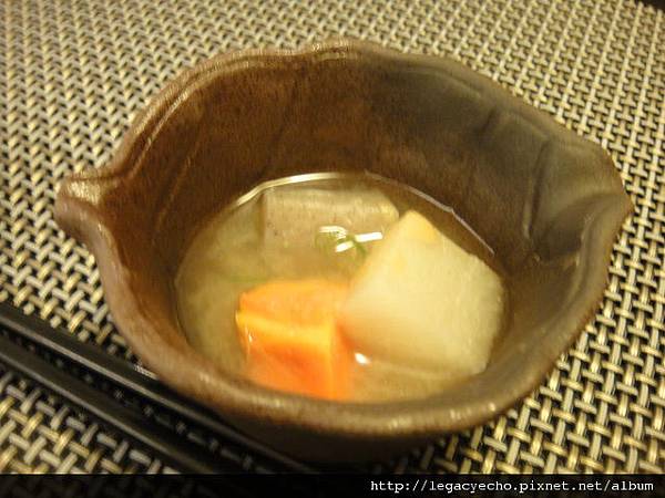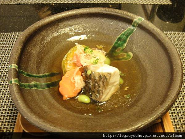當天,有點冷,是不是師傅貼心,調換了上菜順序,先上熱食煮物,暖暖顧客的心,不得而知。芋頭、紅白蘿蔔的煮物,因為高湯濃郁,味道不錯。