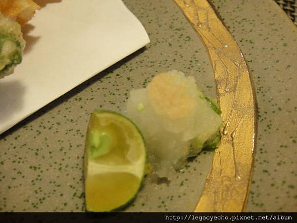 薑與白蘿蔔泥混搭,配上金桔,佐以柴魚醬汁。