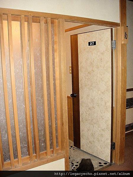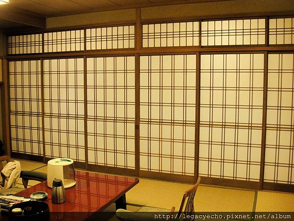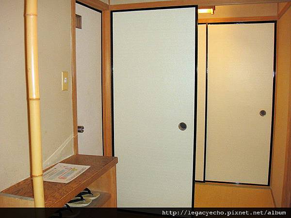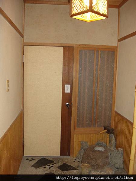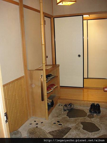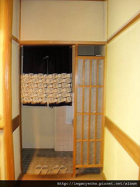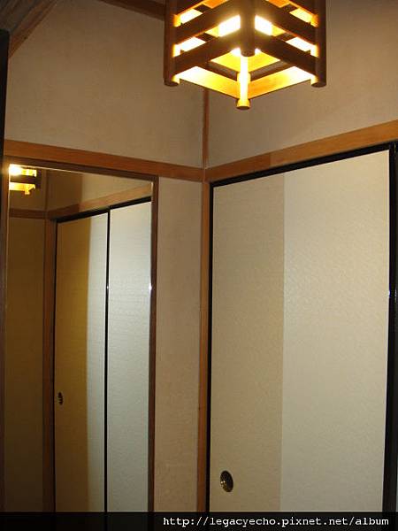 右側大門入玄關,左側為紙窗(貼FRP窗紙),玄關燈通常會開,讓燈光由窗櫺流瀉,增加走廊照明。