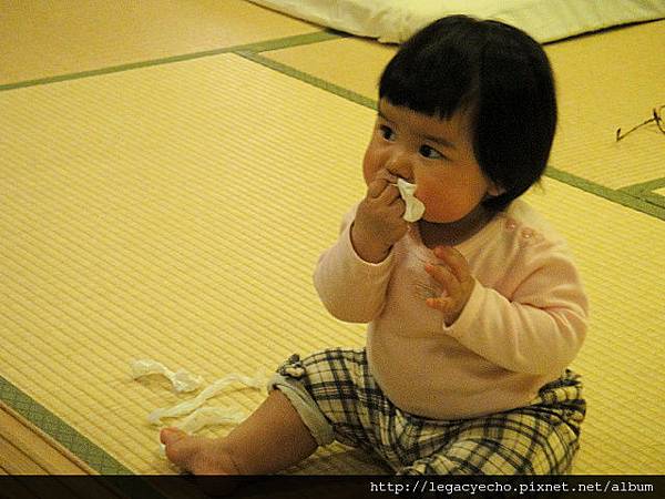 阿祖教亮亮流口水時要拿衛生紙輕輕擦拭,亮亮似乎擦過頭了!
