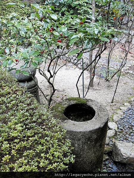 庭園用生態築法,利用鵝卵石,規劃出排水的水道。