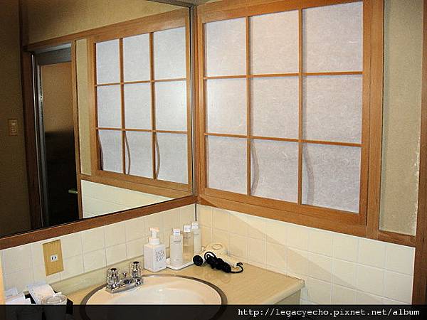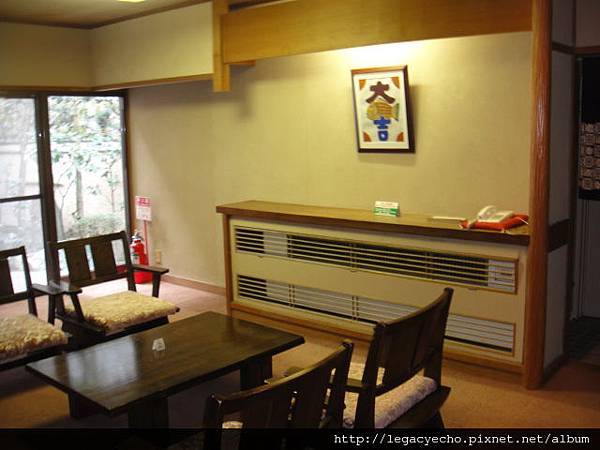 飯店很貼心,多人住宿的房型,怕洗手間不夠用,在客房外側有一小廳作為休息室。落地窗外還有日式庭園造景,在此閱讀書報,怡然自得。