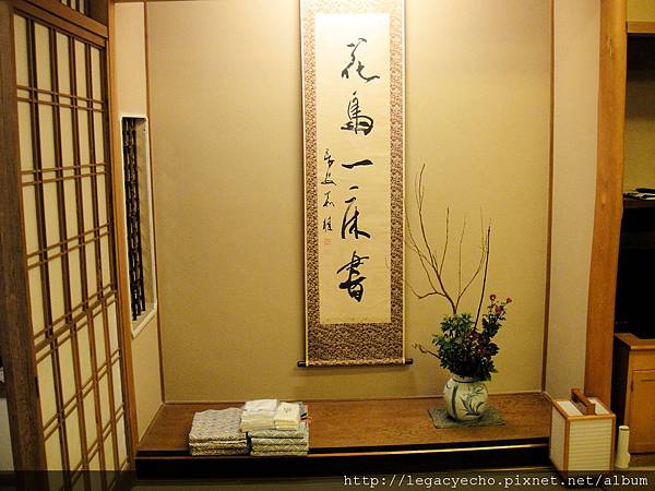 第二天早上用早餐時,服務人員來收拾床被,將浴衣放在凹間,提醒我們已經更新浴衣。