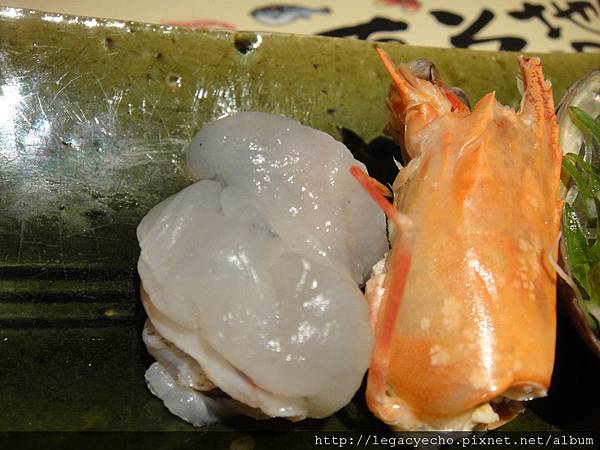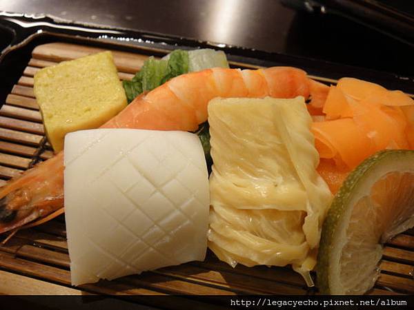 第二個晚上的生魚片,活蝦、生鮑魚、青魽、另一好像是水針魚。