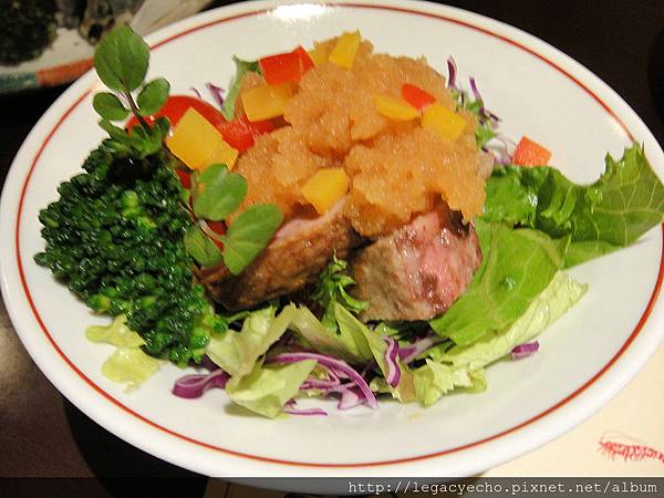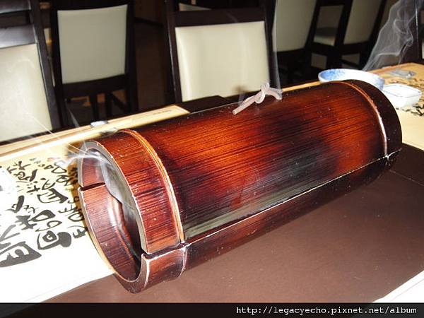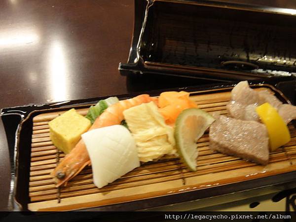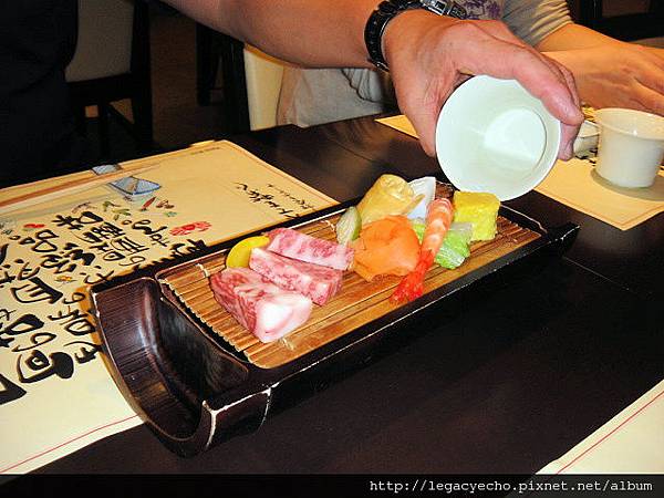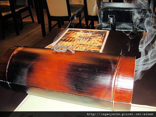 熟食的部分第一個晚上主要為上等神戶和牛,用一個竹筒裝盛。