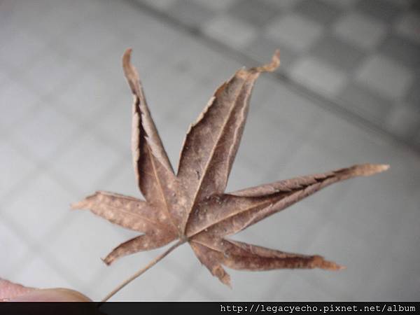 歸途在有馬驛站地上,撿拾一片枯乾的楓葉,葉落再經風雪,雖已殘破,握在手上,心中熱切而有盼望,就在我觀望這片枯葉的一刻,心中已孵著一個賞楓的大夢...
