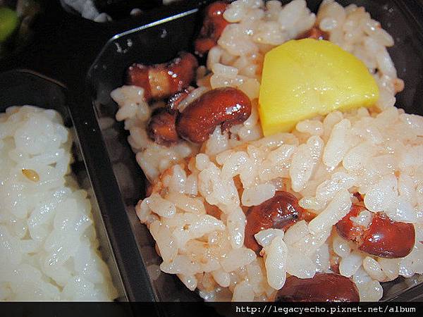 紅豆飯上有塊栗子。