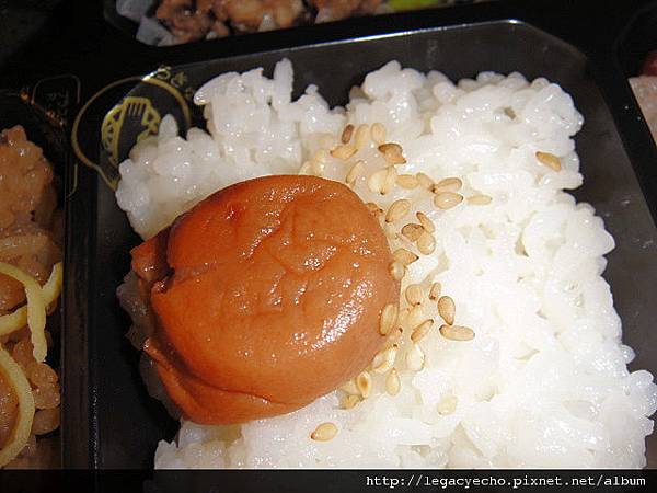 白飯上有梅子。