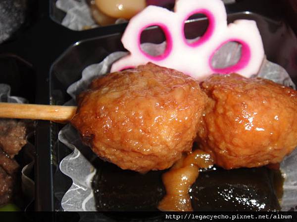 醬煮魚肉與肉混合做成的丸子以及一塊瓢乾昆布主。
