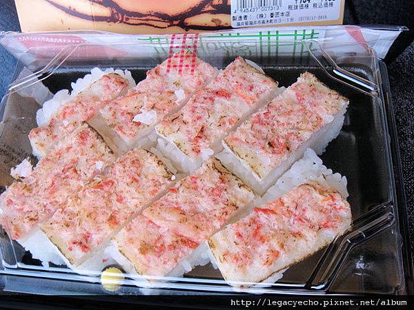 這是蟹肉押壽司,蟹肉輕微炙烤,人氣商品。