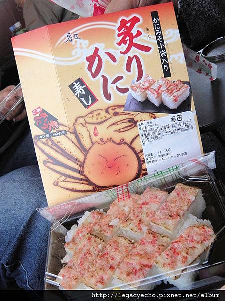 這個螃蟹型便當盒是福井車站最暢銷的便當,白飯上鋪滿蟹肉絲,來不及拍照就被吃個精光。