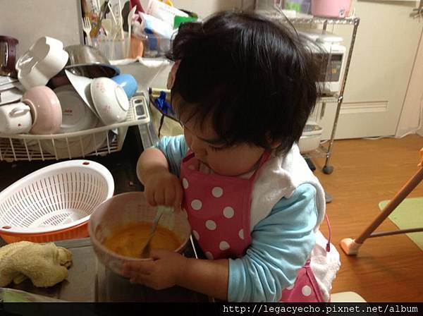 亮亮最喜歡吃玉子燒,幫忙打蛋是亮亮非常期待的工作。