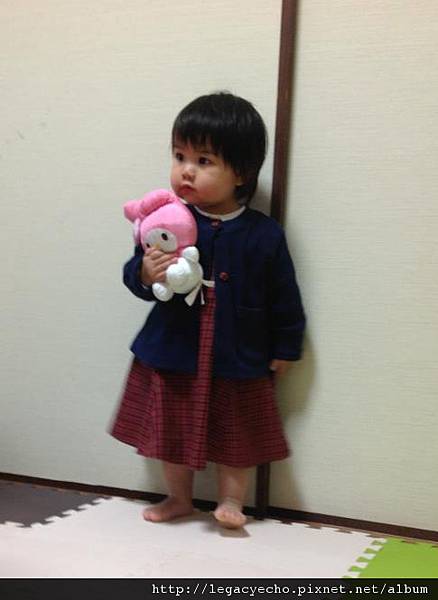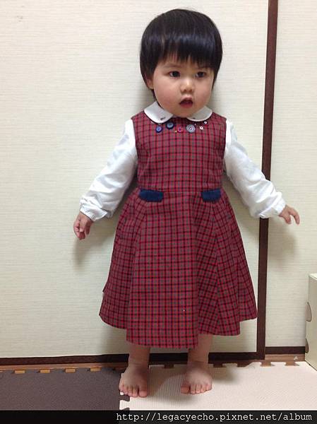 在大阪梅田阪急百貨幫亮亮買了一套衣服作為聖誕節禮物,英國學院風格子背心斜裙,配上白上衣,加上藍色外套。