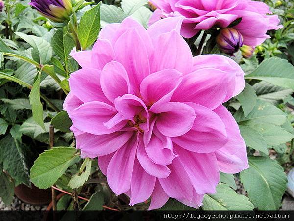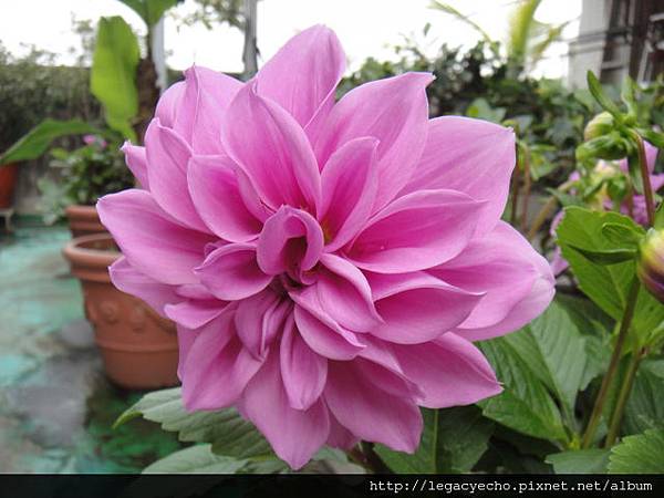 花形碩壯的大理花,為了避免被風折斷,需要用竹籤做固定。粉紫色的大理花,花瓣漸層,花心收口略為捲曲,像是一把迷你型的小海芋,更像是花仙子的芭蕾舞澎裙。