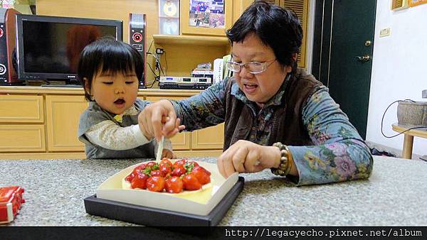 馮奶奶知道亮亮元旦假期會回來。特別訂了奇士派的草莓蛋糕。