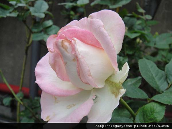 即使受傷的玫瑰,仍然努力地撐著,綻放到最後,雖不夠完美,卻讓人感動。