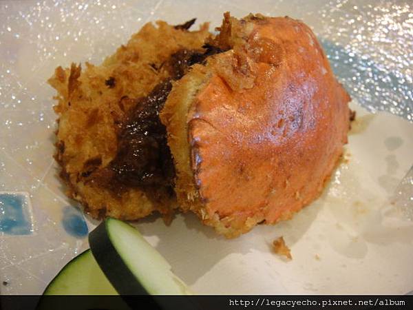 海鮮可樂餅利用螃蟹殼為造型,殼內放入鮮干貝丁、蟹肉等餡料,鮮奶白醬調味,裹上炸粉油炸,表皮酥脆,內餡香甜可口。
