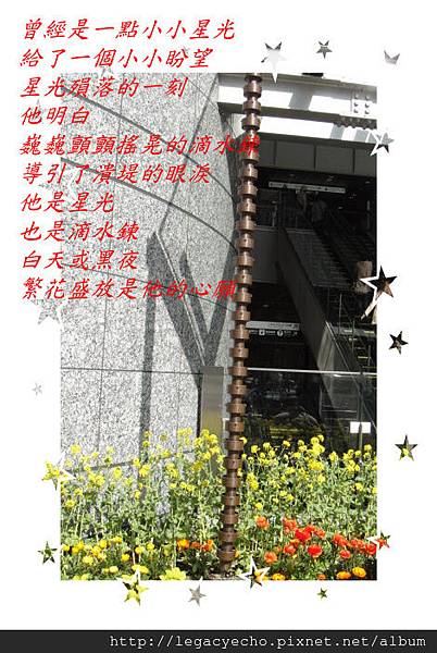 我總覺得他像是簷下垂墜的滴水鍊,雖然巍巍顫顫搖晃,卻導引了潰堤的淚水,讓每一個正在受苦的生命,望見這孩子,而有了活下去的勇氣。
