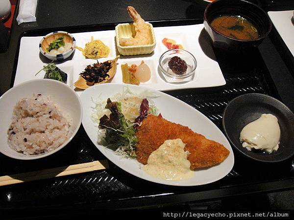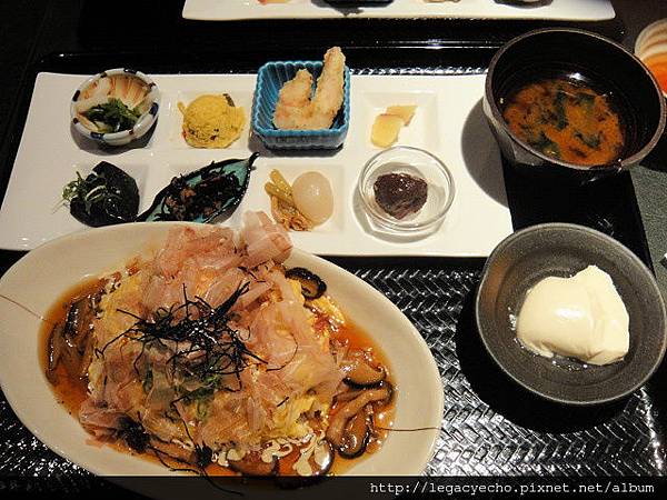 主菜以橢圓長盤盛放,其他八樣菜用八格長方盤盛放,一皿現做豆腐,若喜歡可以續加,還有味噌湯。
