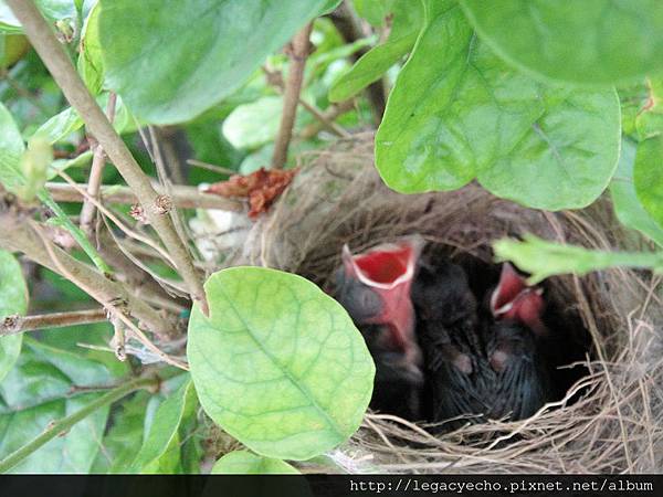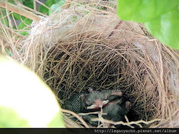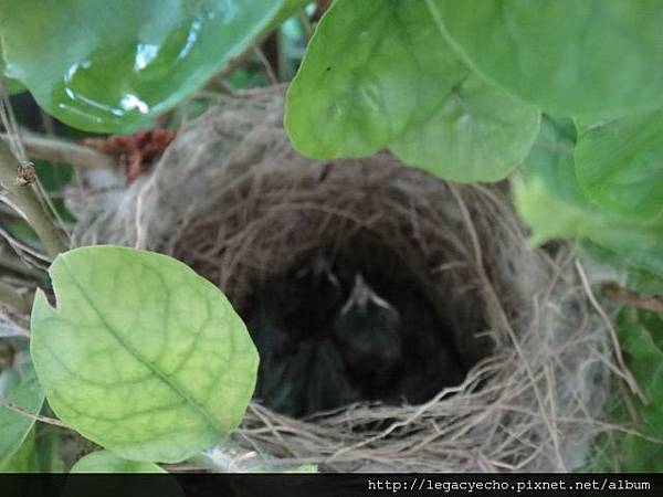 雨停了,今晨天微微發白,我上頂樓陽台看看它們是否安然無恙,這是雛鳥孵出的第三天。