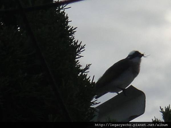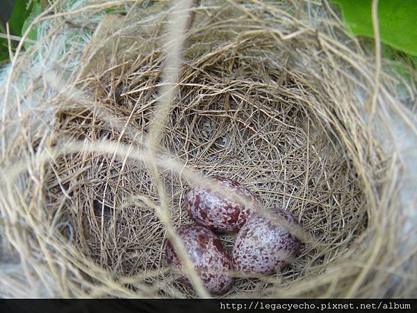 五月八日三顆白頭翁的鳥蛋靜靜躺臥在鳥巢,鳥巢築在約莫一人高的女兒牆邊的茉莉花叢。白頭翁親鳥已經開始進行孵卵動作,盡量小心不去打擾。
