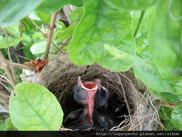 五月十九日下午發現雛鳥已經孵出,氣象局的豪雨特報有些怵目驚心,深怕它們熬不過。