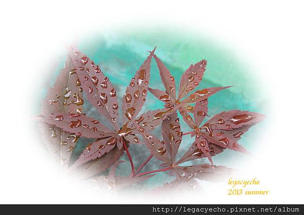 今天會想念午後一場傾盆的雷陣雨,雨滴停落在春天發芽就有紅顏的紅楓,葉片上的水珠,帶來一絲清涼的感覺。