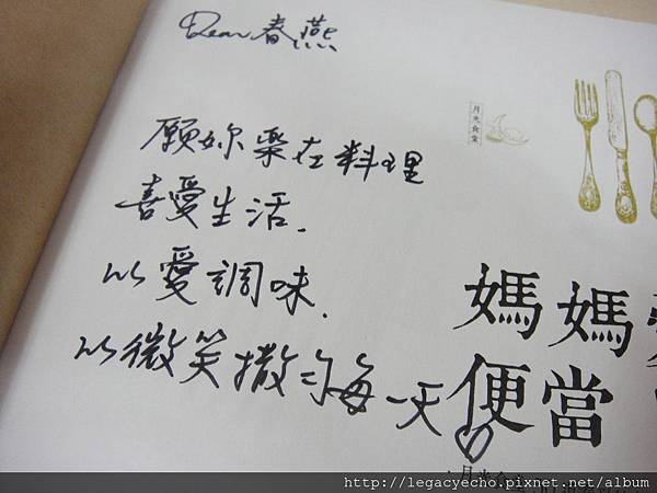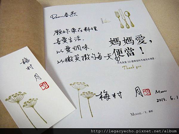 這本書我請 Moon 簽名,準備送給我的媳婦(亮亮的媽媽),希望一份用便當代表媽媽的心意,藉由這本書傳遞。