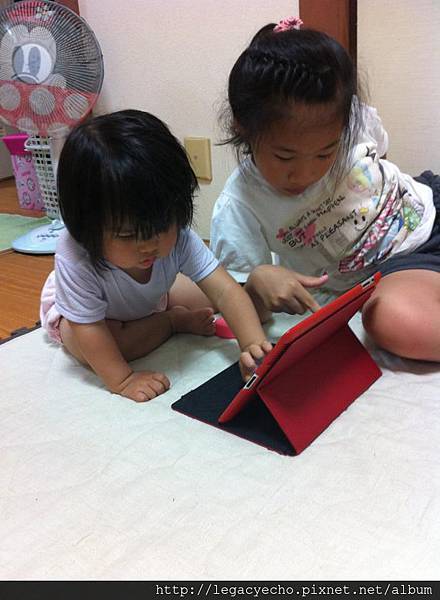 回到家,洗好澡,又寧陪著亮亮玩ipad,姊妹倆專注又開心。