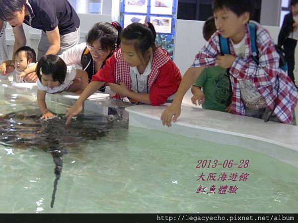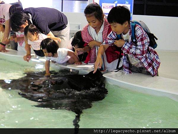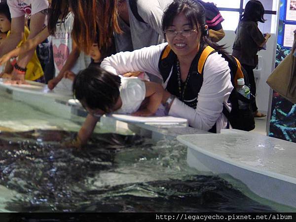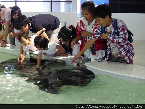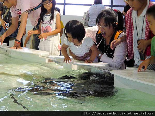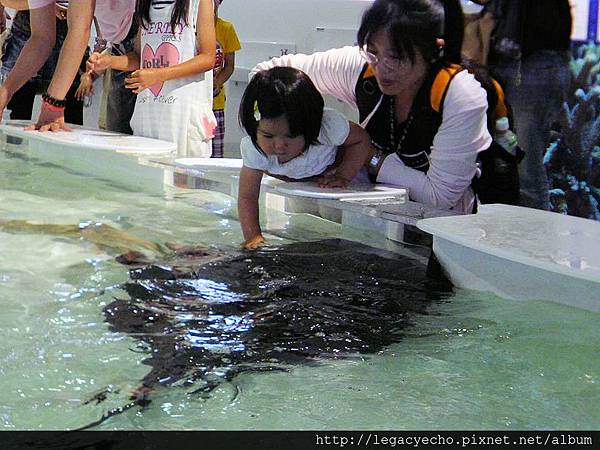 亮亮終於願意自己試試看摸摸魟魚,估溜估溜的魚背。