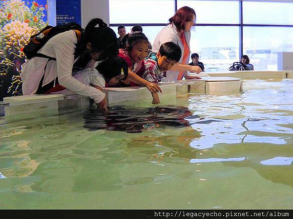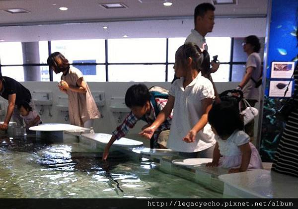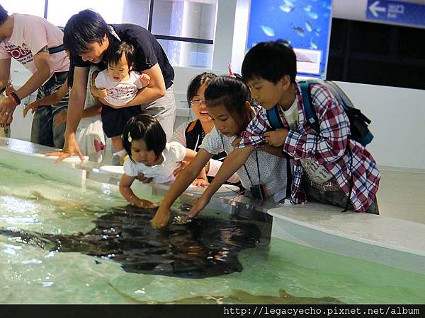 這一次亮亮陪哥哥姊姊去海遊館,正好海遊館重新整修,增添了許多讓兒童親近海洋生物的體驗館,亮亮有了第一次摸魚的體驗,不是大白鯊,是有著圓圓體型的魟魚。