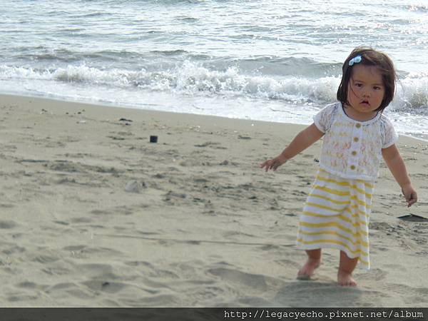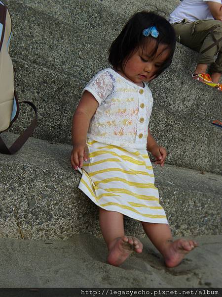 亮亮上一次到白濱海灘體驗海砂的觸覺,白濱海灘是白色的沙。