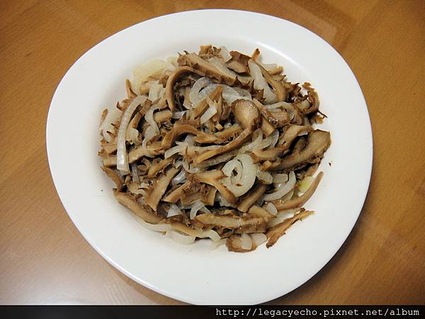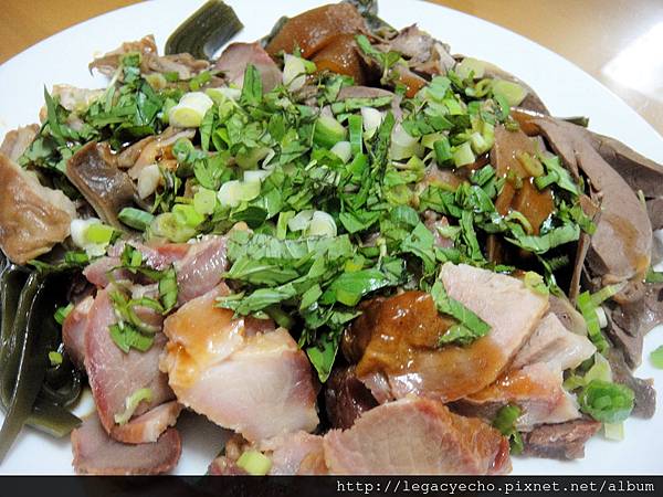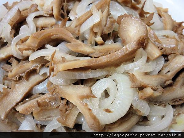 洋蔥(為方便父親咀嚼,洋蔥絲炒軟)拌馮家滷牛肚,用生洋蔥涼拌味道更嗆更可口。唯一可惜肇中不喜歡吃牛肚。