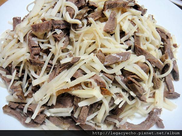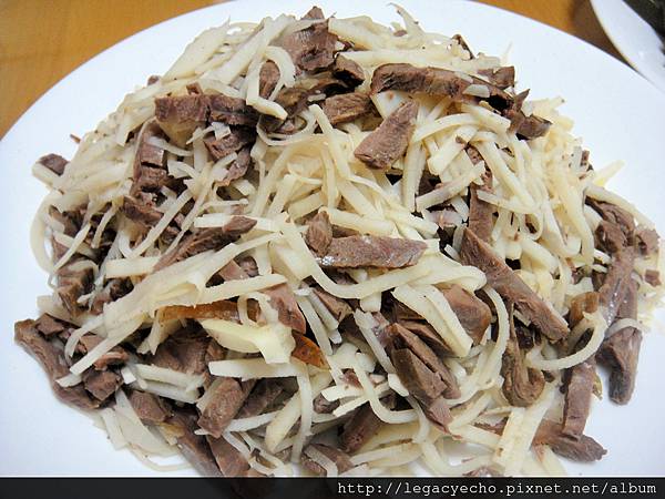 另外我還預備了黃金筍絲拌馮媽媽的滷牛腱絲,現在做菜都會特別考慮讓父親方便食用。