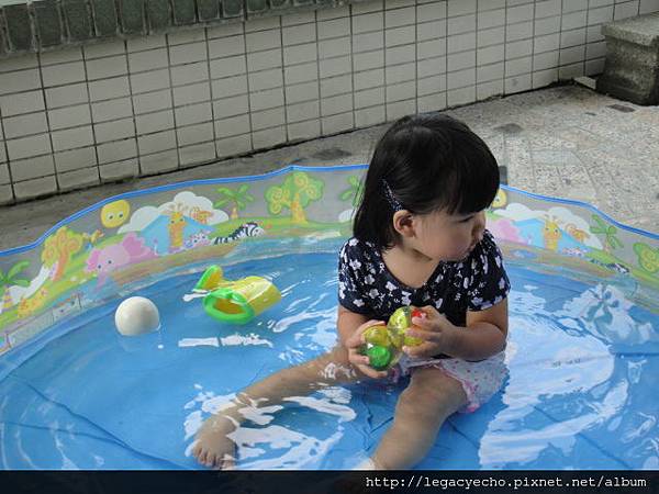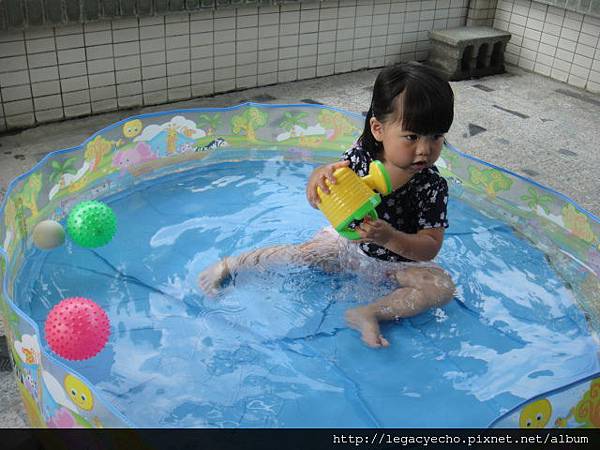 亮媽媽訂了票,原本預定要帶亮亮到文化中心欣賞天鵝湖芭蕾舞劇,很可惜這一場表演規定未滿六歲的小孩無法進場,只好讓亮爸亮媽約會去,由阿公阿嬤客串褓母,我們先讓亮亮看了電腦上一段天鵝湖舞芭蕾劇後,亮爸提議讓亮亮在陽台玩水。