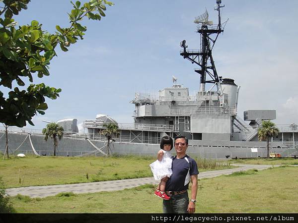 還上軍艦繞了一圈,這一次我們又帶亮亮再去看一次,天氣很熱,我們只在樹蔭下停留,沒有上船。