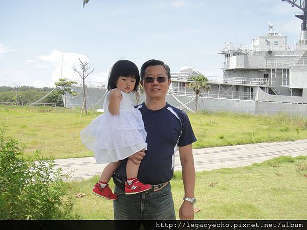 三月中旬亮亮和媽媽一起回台灣打預防針時,阿公特地帶亮亮去看軍艦。