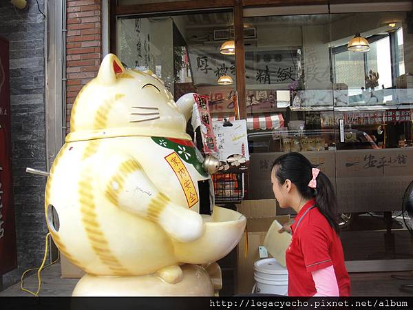 亮亮一面吃著蝦餅,一面看阿姨由招財貓的肚子夾出一片片蝦餅,覺得好稀奇。