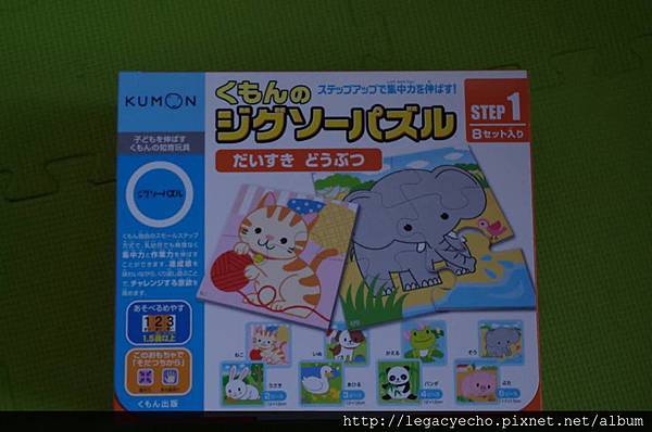 緊接著進入 STEP 1(適用年齡1歲半至3歲) 動物圖案拼圖(共計八個圖案,分別為兩片、三片、四片以及六片。)
