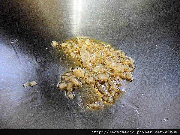 首先利用薑末爆香,將薑的香氣透過油溫提出,接著放入蒜末續炒出蒜的香氣。