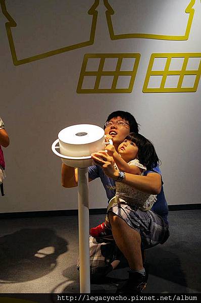這是利用手搖產生聲波發電,亮亮興高采烈的操作者。