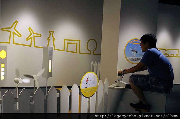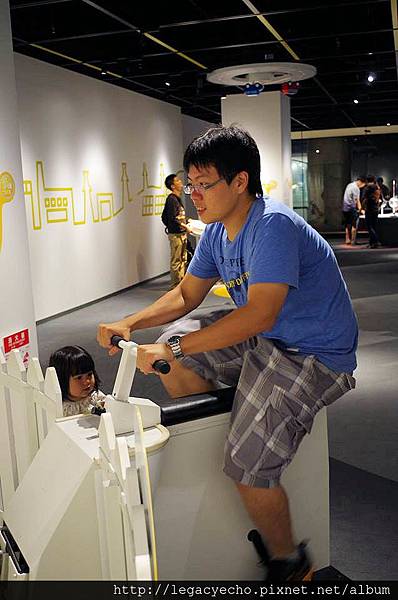 還有利用騎腳踏車的方式將動能變成電能,亮亮看著亮爸用力踩踏板發電,覺得稀奇。