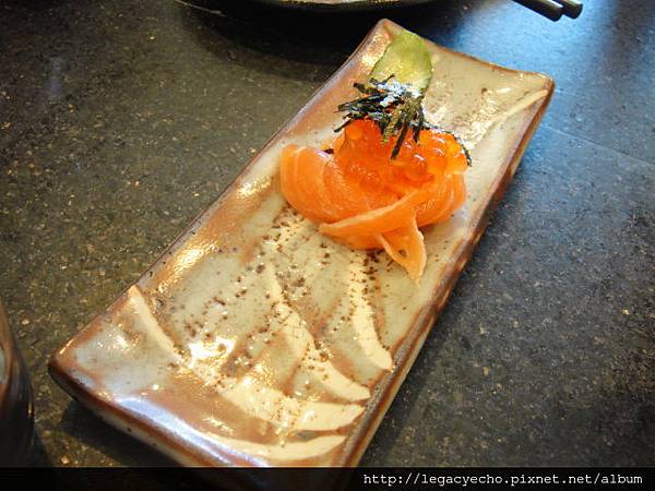 鮭魚捲醋漬洋蔥作為生魚片的前導款,胃口被敲開了。