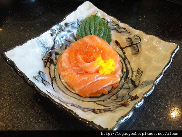 鮭魚生魚片是最普遍被喜愛的,透過巧思,視覺裡有了玫瑰花園。