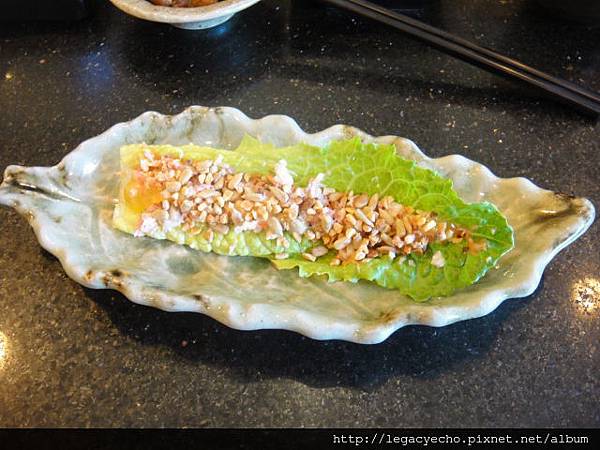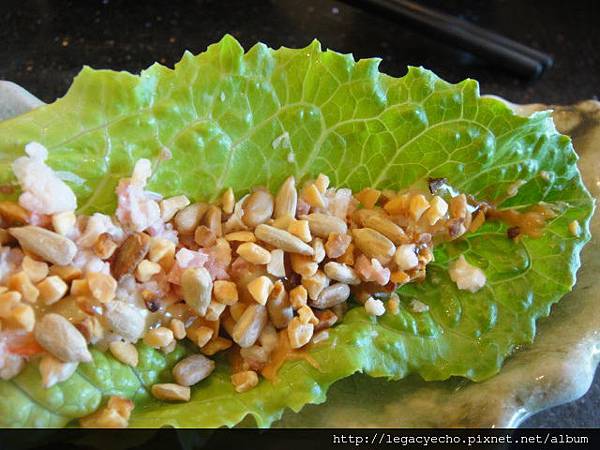 特調醬汁的堅果羅曼龍蝦捲,爽脆甘甜。