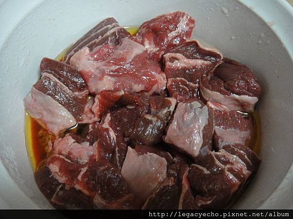 前一晚,先將馮媽媽為我預備的牛腮肉以紅椒風味的酪梨油浸泡一夜,當然要放在冰箱冷藏區。