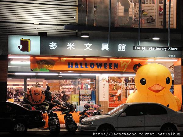 文具店在門口放上應景的萬聖節南瓜,再加上最近瘋迷全球的黃小鴨。